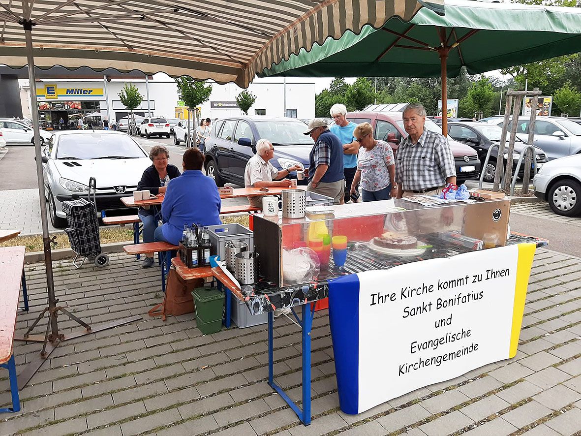 Die »Kirche am Markt« ist eine Aktion der evangelischen und katholischen Kirchengemeinden der Weststadt. Freitags ist Wochenmarkt auf dem Festplatz Hofherrnweiler-Unterrombach. Im Juli sind die Kirchengemeinden mit einem Kaffeestand vertreten.
